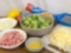 Transfer the veggies to a mixing bowl and stir in the lemon juice and dijon mustard. I usually eyeball this but its about 1 tablespoon lemon juice and 2.5 - 3 tablespoons mustard. Mix it until its evenly coated and then add your ham and cheese to the mix and combine. At this point you can place this in the fridge overnight or get straight to baking.
