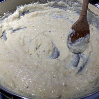 In a large Saucepan on low heat add the ingredients for the sauce: 1 cup Ricotta, 3 Tablespoons lemon juice, the zest of 1 lemon (grate the rind of a lemon with the smallest holed grater you have), 1/4 cup olive oil, 1/2 cup fresh grated parmesan, and 1/2 teaspoon crushed red pepper (add more if you want some heat). The sauce will look very thick at this point. Now add 1/4 cup of the reserved pasta water. The starches from the water will keep the sauce from getting too thin. If you want a thinner sauce you can add a little bit of pasta water at a time until you reach the desired consistency. Heat this until the sauce is just warm. Add the salt and pepper to taste at this point.